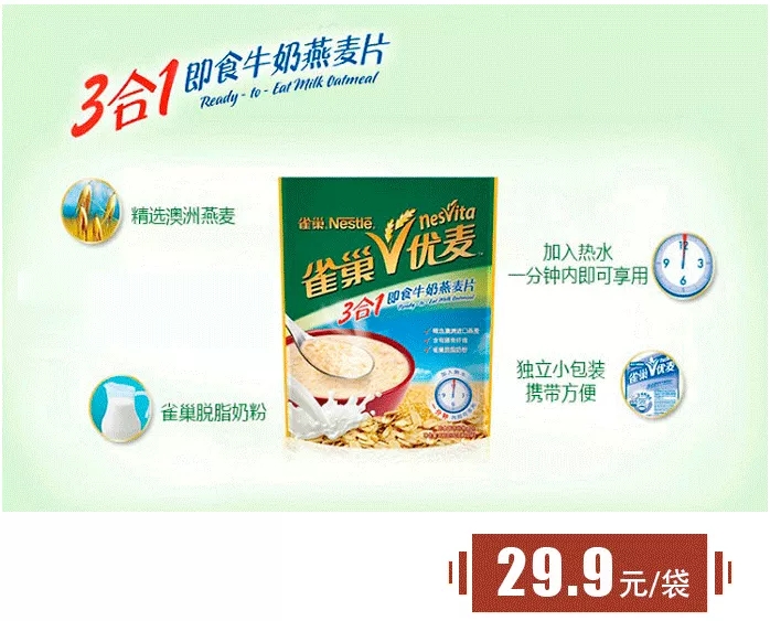 400g雀巢優(yōu)麥3合1即食牛奶燕麥片